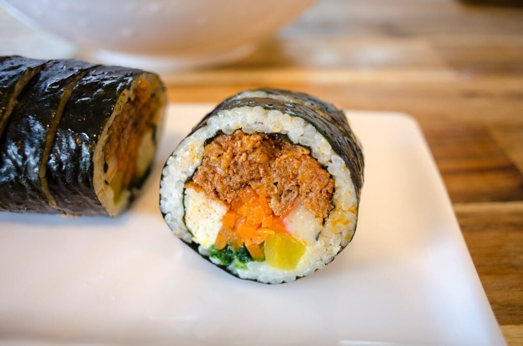A typical roll of gimbap contains 500-700 calories, primarily from white rice. For someone trying to manage their weight, this carb-heavy meal can cause blood sugar spikes and leave you feeling hungry again quickly.