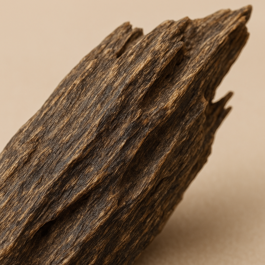 The most prized incense material in Korean history. Agarwood forms when Aquilaria trees become infected with specific mold, producing dark, resinous wood so dense it sinks in water. The scent profile is complex: woody, resinous, slightly sweet with animalic undertones. Kings and high-ranking monks reserved the finest grades for the most sacred occasions.